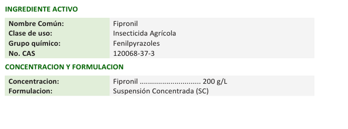 CAMPO FIPRO 200 SC es un insecticida de acción sistémica y de amplio espectro; que actúa por contacto e ingestión. Presenta un buen efecto residual. CAMPO FIPRO 200 SC se emplea diluido en agua; preparar una pre - mezcla de acuerdo a la dosis recomendada, en un tercio del volumen de agua a utilizar. Agitar bien y completar el volumen de agua de aplicación. CAMPO FIPRO 200 SC puede ser aplicado con cualquier equipo convencional terrestre (mochilas a palanca o motor, parihuelas, etc.). Antes de iniciar la aplicación, asegurarse que el equipo se encuentre en perfecto estado de funcionamiento y correctamente calibrado.