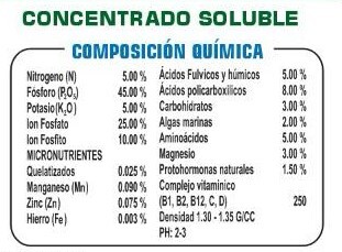 Es un fitonutriente en suspensión concentrada de alta riqueza de fosforo, nitrógeno y potasio, adicionado a ello, magnesio y se utiliza en aplicación foliarpara mejorar los cultivos, este importante Fitonutriente ayuda a la hoja y a la planta a cumplir su rolfisiológico como elemento esencial en alta nutrición, es una moderna formulación que permita alta solubilidad y asimilación.